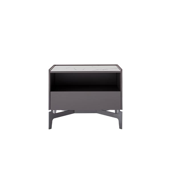 This is a single drawer nightstand table. The concave small items on the table top are not easy to slide off. The Kara white ceramic is to improve the level and make it more practical and durable. The integrated molding of gray metal legs make it more light and beautiful. The 45 degree bevel angle is to easily pull the drawer out. The imported runner is anti-collision, giving a sense of silence.