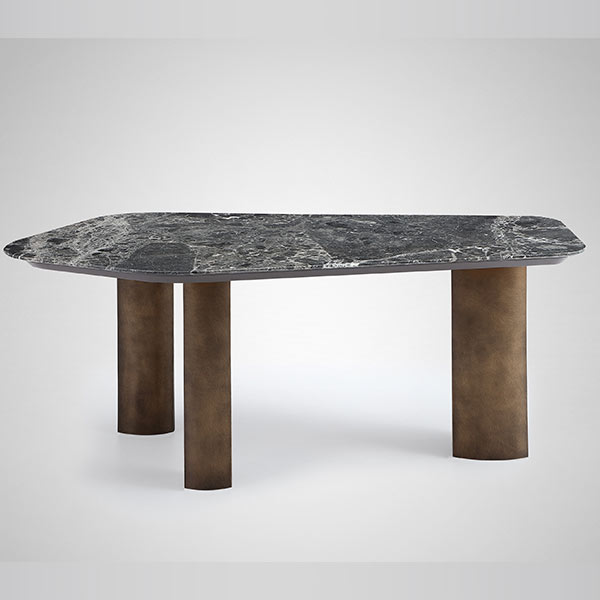 Dining Table customize size 190*100*75 grey marble top,bronze metal leg