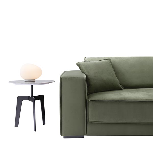 The calm floor-standing design and the thick seat cushion, have the space-saving effect. The slim backrest present a strong impact.The steel frame is covered with high-density sponge, and the shape is three-dimensional and straight. Flexible side table built-in, storage and power supplyment are more convenient to use together.ABS hidden feet, modular and various combinations. fabric Sofa