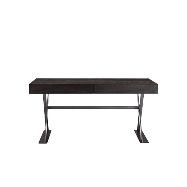The X-shaped crossed is grey metal leg writing desk, stable and firm triangular shape, break through the conventional table leg design, with a “mud support” component similar to Chinese furniture at the bottom, and a transverse steel beam in the middle, making the overall structure more solid. Concealed double drawer design.